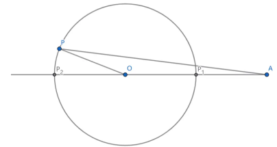 取了等号,那么最大值就是 $AO+PO$,最小值就是 $AO-PO$。