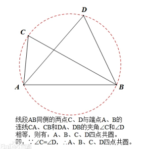 亦即若点 D 不在⊙O 上,∠D≠∠C,引理得证。